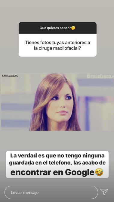 Tras mostrar la imagen de su operación, los seguidores de Gala le preguntaron si tenía fotos de su cara antes del accidente. Ella buscó algunas en Google y comentó que consideraba que se veía "rarísima".