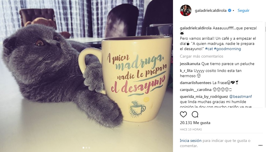 Y tal como lo hace todos los días, Gala compartió una foto de su gato quien sostiene una taza de café. La imagen estaba acompaña de la frase "Pero vamos arriba!! Un café y a empezar el día!". El problema vino después, cuando decenas de sus seguidoras comenzaron a criticarla por precisamente tomar café.