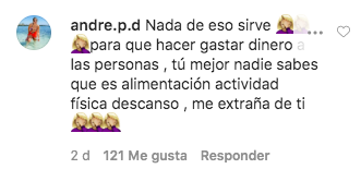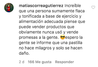 Si bien la exchica reality se llenó de felicitaciones por su nuevo proyecto, también hubo quienes no dudaron en criticarla. Y es que algunos usuarios plantearon que el físico que ha logrado Gala se consigue entrenando y comiendo de manera saludable, y no a través de los productos que ella ofrece.