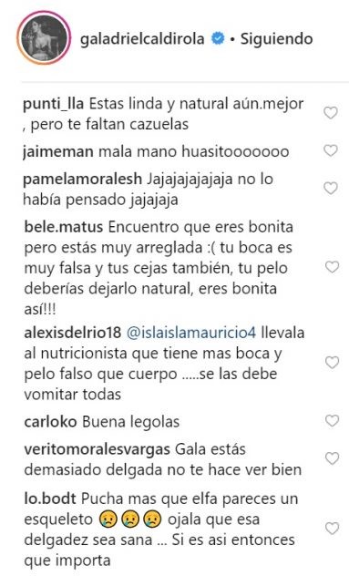 Sin embargo, más que comentarios a su pregunta, Gala se llenó de críticas por lo delgada que sus seguidores consideran que está.