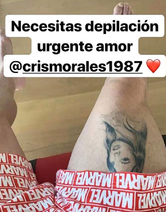Es tal el amor que siente el futbolista por su mujer, que decidió tatuarse su rostro en uno de sus muslos y hoy luce orgulloso esa 'locura de amor'.