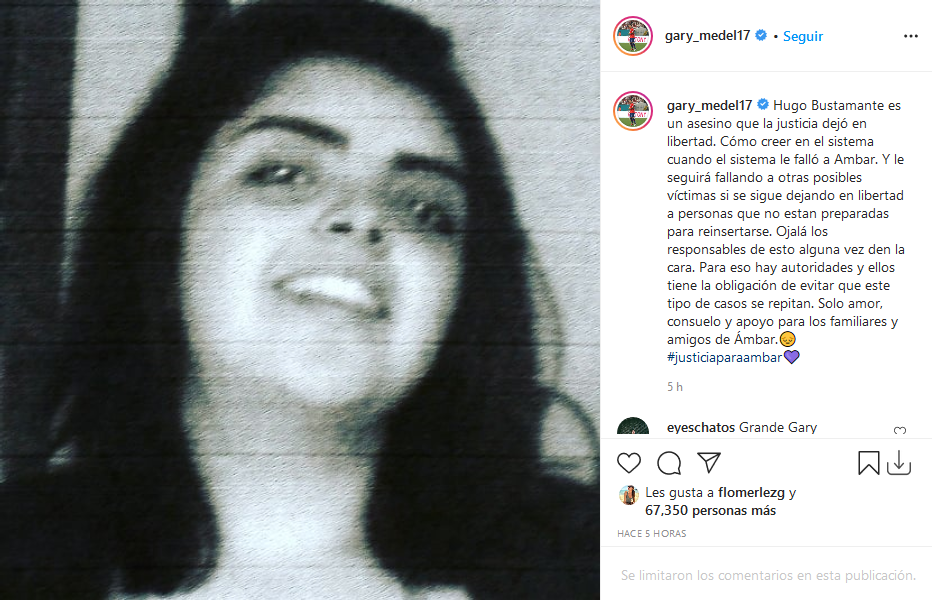 A través de sus redes sociales, el jugador del Bologna italiano escribió una potente reflexión y descargo ante las injusticias. “Hugo Bustamante es un asesino que la justicia dejó en libertad. Cómo creer en el sistema cuando el sistema le falló a Ámbar. Y le seguirá fallando a otras posibles víctimas si se sigue dejando en libertad a personas que no están preparadas para reinsertarse", expresó el deportista.