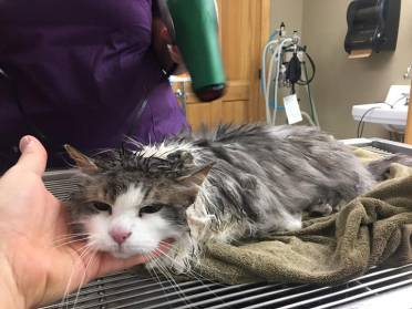 En un principio sus dueños tuvieron a Fluffy por dos horas en agua tibia y mantas, pero no fue suficiente, por lo que tuvo que estar en urgencias con un desalentador pronóstico.