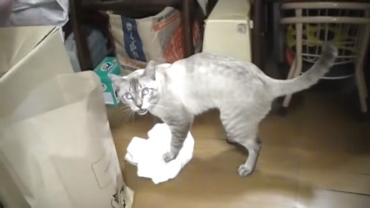 En el video que fue tomado en una zona de Japón, se puede ver como un gato desliza una toalla de un extremo a otro, y se enoja cuando su dueño se acerca.