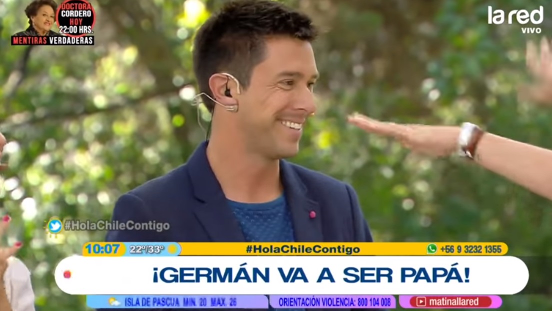 Una sorprendente noticia recibió el panelista de "Hola Chile" Germán Schiessler mientras estaba en vivo en el matinal, ya que le avisaron que su esposa, quien estaba embarazada, estaba en trabajo de parto antes de tiempo.