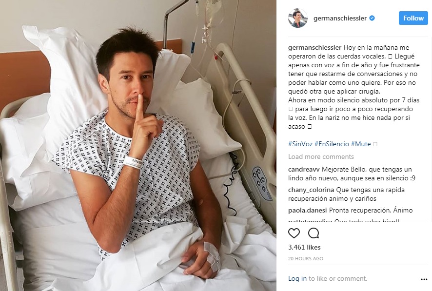 Así al menos lo reveló el mismo periodista a través de sus redes sociales, donde publicó una imagen de sí mismo, mientras permanecía hospitalizado. "Hoy en la mañana me operaron de las cuerdas vocales" revelaba Schiessler a través de su cuenta de Instagram.