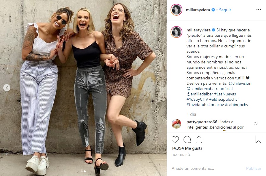 "Si hay que hacerle 'piecito' a una para que llegue más alto, lo haremos. Nos alegramos de ver a la otra brillar y cumplir sus sueños", partió escribiendo Millaray en su cuenta de Instagram.