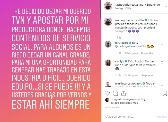 Por su parte, impacto causó la renuncia de Ignacio Gutiérrez a TVN, la cual el animador oficializó este domingo en redes sociales.