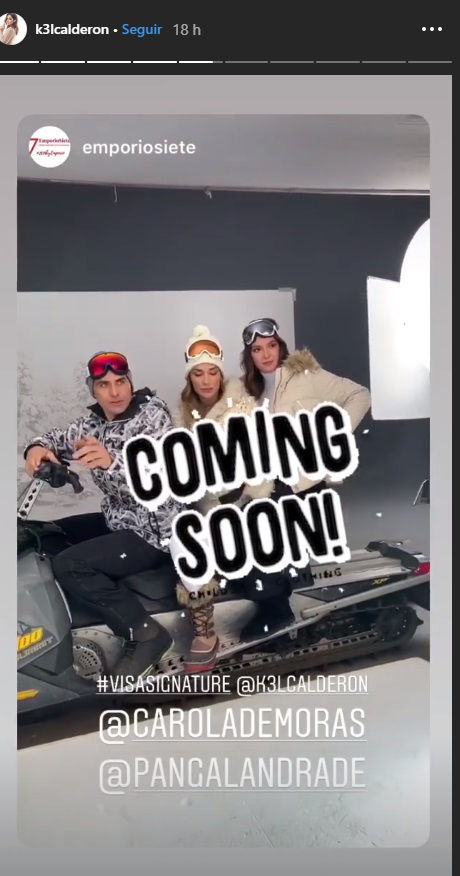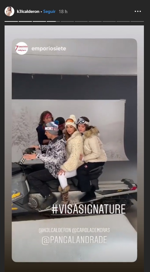 De hecho, Kel compartió en sus historias de Instagram el detrás de cámaras, donde se le ve a los tres sentados en una moto de nieve. “Día de grabación invernal para Visa Signature”, escribió la fashionista en una de las fotos.