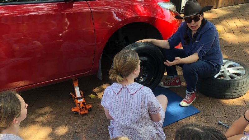Desde verificar la presión de las llantas, reemplazar un neumático hasta qué hacer en caso de un accidente de tránsito, son parte de las lecciones que aprenden estas alumnas.