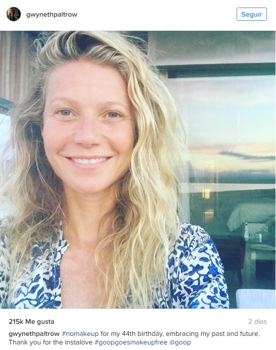 Siguiendo la tendencia de mostrarse al natural, la actriz Gwyneth Paltrow se atrevió a publicar una selfie sin una gota de maquillaje.