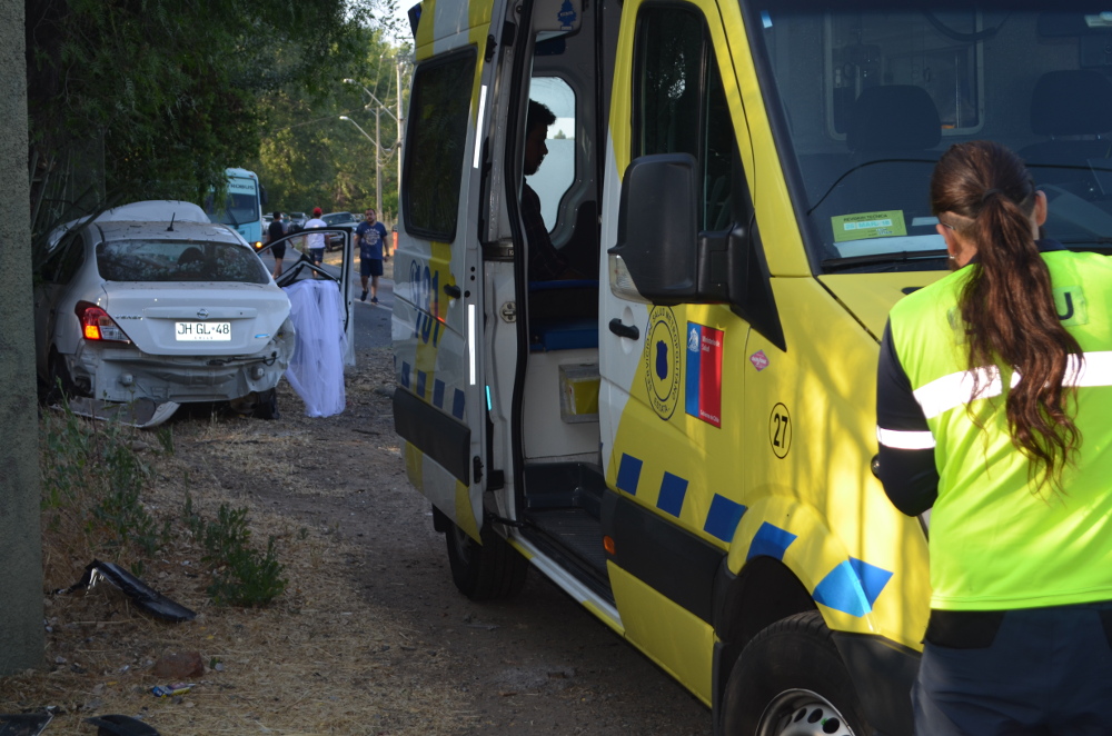 Un joven irresponsable chocó a una pareja de recién casados, que se dirigían felizmente a celebrar la fiesta de matrimonio, después de la tradicional sesión de fotos en la Viña Santa Alicia, en el sector de Santa Rita, Pirque (RM).