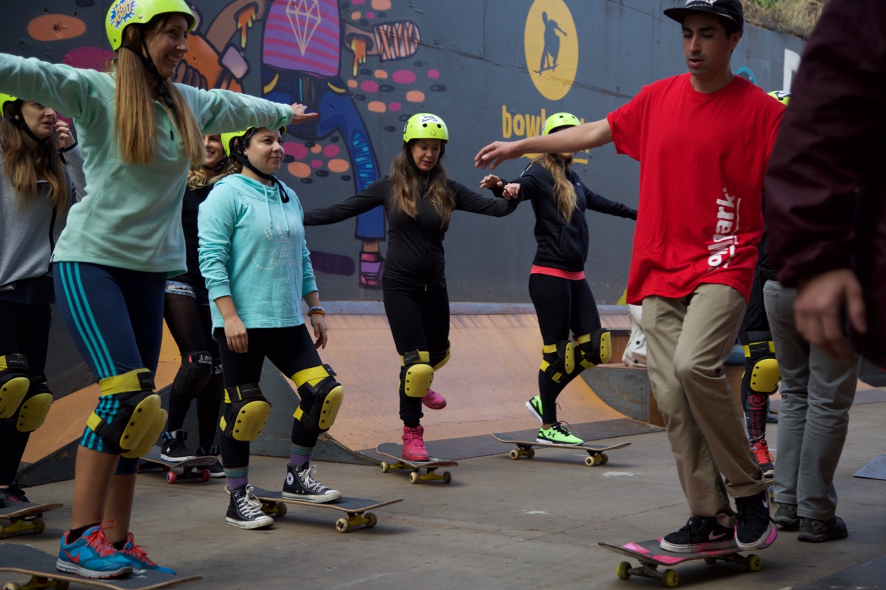 Ambas llegaron hasta el skatepark del Mall Sport con sus hijos y no precisamente para que ellos jugaran. Fran y Vivi se pusieron casco y rodilleras y se atrevieron a subirse a las tablas. Con ayuda de instructores, aprendieron a mantener el equilibrio y desplazarse como verdaderas skaters.