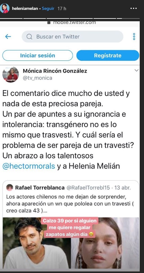 “Los actores chilenos no me dejan de sorprender, ahora apareció un wn que pololea con un travesti (creo que calza 43)”, fue lo que escribió el usuario.