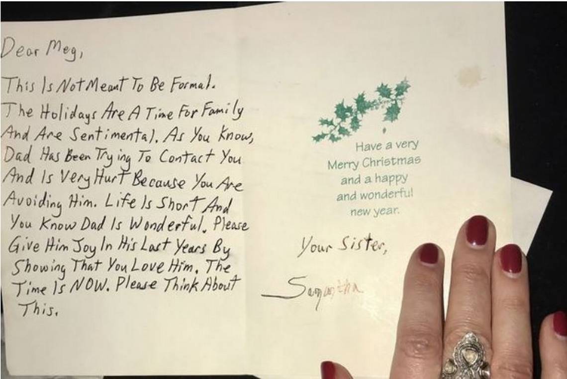 Ahora fue su hermana, Samatha Markle, quien con motivo de las celebraciones de fin de año, le escribió una carta a Meghan, pues teme que a la larga se arrepienta de no haber reconciliado con su padre.