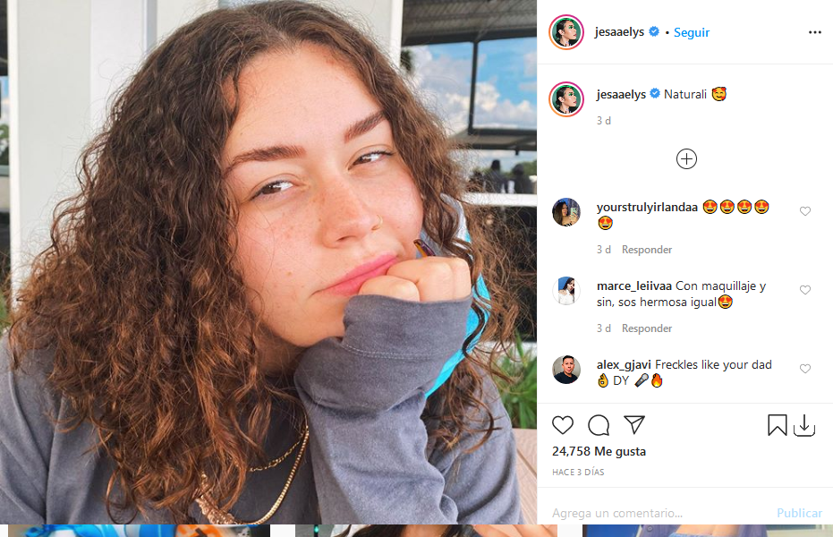 En la imagen se ve a Jesaaelys mostrando su rostro en primer plano y con pelo desordenado, enseñando sus pecas. “Naturali”, escribió junto a la publicación.