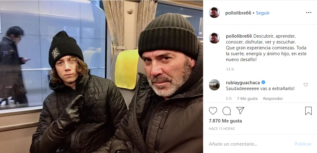 "Descubrir, aprender, conocer, disfrutar, ver y escuchar. Qué gran experiencia comienzas. Toda la suerte, energía y ánimo hijo, en este nuevo desafío", fueron sus palabras.