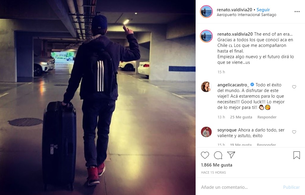 Además el mismo Renato se refirió a la aventura que emprende con una postal donde se muestra caminando con su maleta. "The end of an era (el fin de una era). Gracias a todos los que conocí acá en Chile, los que me acompañaron hasta el final. Empieza algo nuevo y el futuro dirá lo que se viene", comentó el hijo de Conserva y Valdivia.