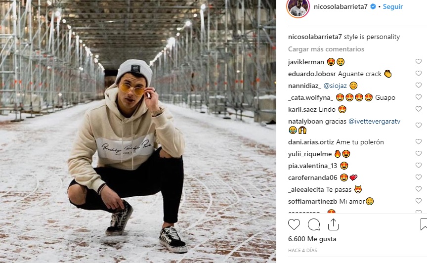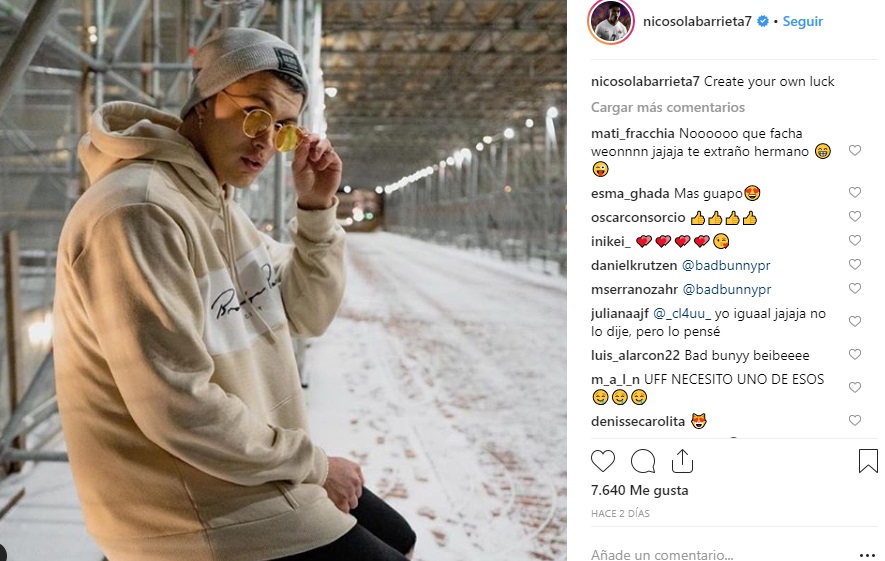 El joven que reside actualmente en Nueva York por sus estudios y su carrera de futbolista compartió una foto donde su look era muy urbano y similar al estilo del "Conejo malo", con un polerón ancho, pitillos, lentes de sol claros y zapatillas llamativas.