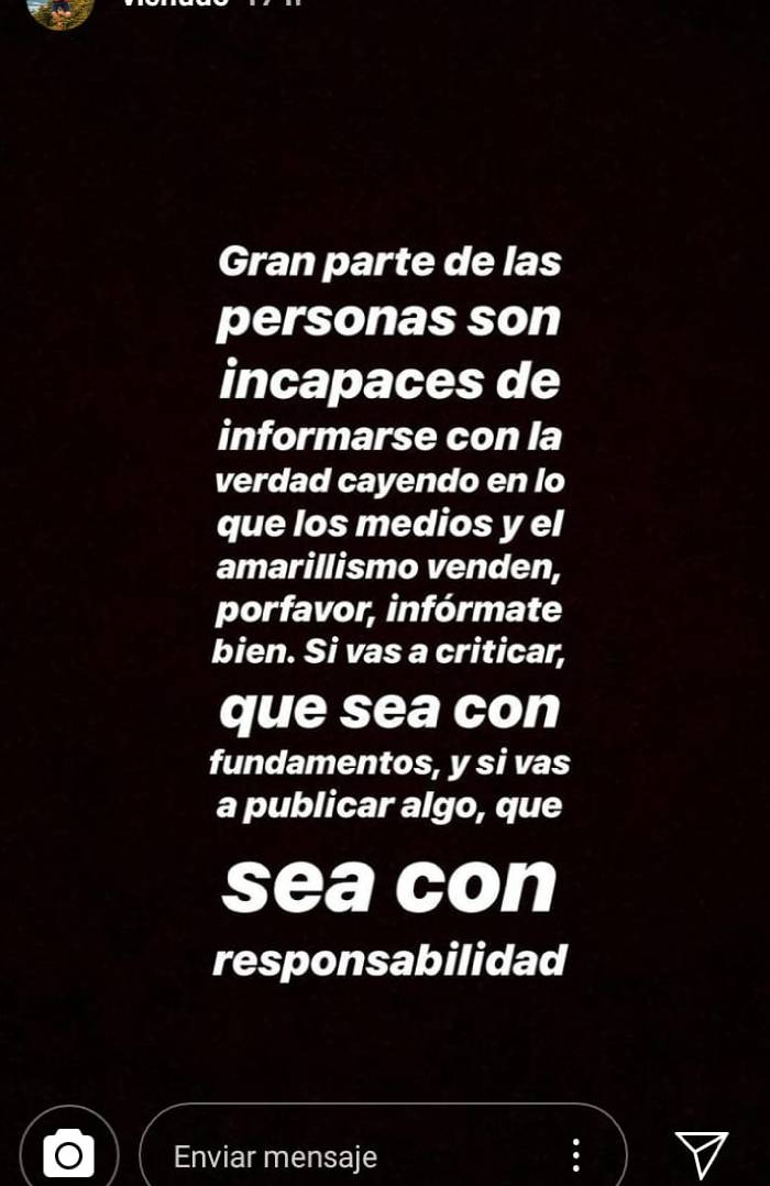 De hecho en las mismas historias de su red social compartió varias críticas que ha recibido Cathy por este "Tinder presencial". Esto, para después publicar un extenso mensaje.