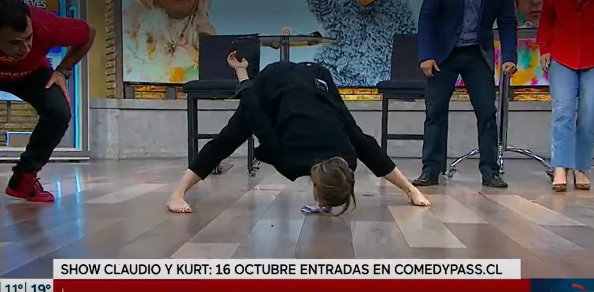 La animadora Diana Bolocco causó sensación en "Mucho gusto" la semana pasada, al realizar un desafío que demostraba su elasticidad. La comunicadora sorprendió con su elasticidad, para poder recoger un papel solo con su boca.