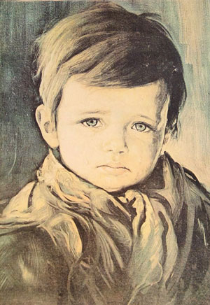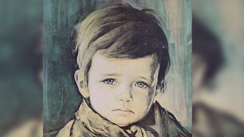Respecto a la imagen del menor, se trataría de un niño que residía en un orfanato, el cual se incendió tiempo después de que Bragolin creara la obra y la regalara a los administradores del recinto. En el incendio habrían muerto todos los menores del orfanato y lo único que resultó intacto sería el cuadro mismo.