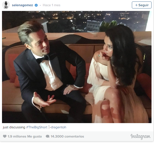 Él de 52 y ella de 23 años, se conocieron durante las grabaciones de "The Big Short", que se estrenó hace poco en los cines y que está nominada a "Mejor Película" en los premios Oscar. Aquí, la ex estrella Disney tuvo una breve participación en las escenas, sin embargo, fue el tiempo suficiente para conquistar el corazón de Brad Pitt, como señalan algunos medios en Estados Unidos. Rumor que tomó aún más fuerza, cuando la intérprete de 'Who says' subió una foto a su cuenta de instagram conversando con el protagonista de 'Troya'.