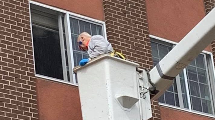 Esto porque después de un mes pudo visitar a su esposa, que está en un geriátrico en cuarentena. Para hacerlo, Nick Avtges tuvo que subir una grúa y verla por una ventana.
