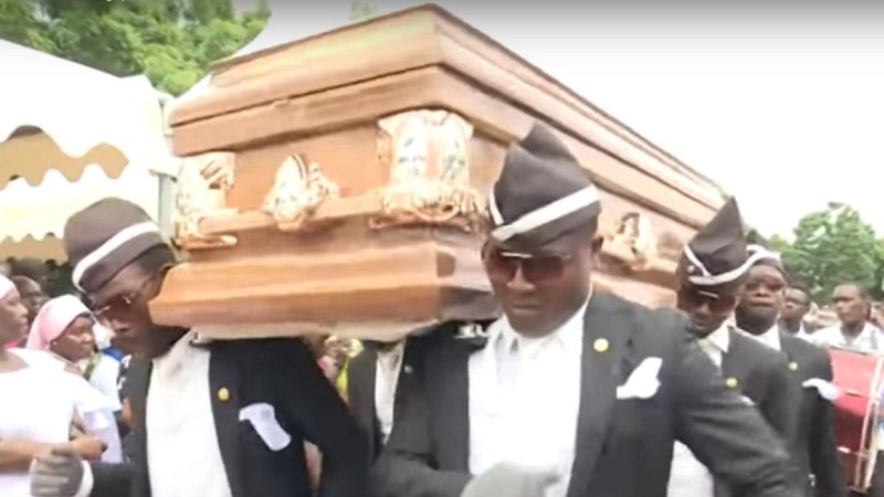 ¿Cuál es el origen del video del "meme del ataúd"? Corresponde a un reportaje hecho en 2017 por la BBC a los Dancing Pallbearers, cuyos servicios son usados en los funerales de Ghana donde se realizan festividades para celebrar la vida del difunto. Ahora, el clip se utiliza después de un fail o chascarro.