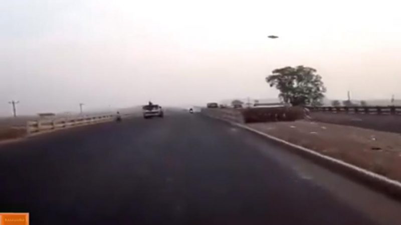 La grabación muestra cómo un hombre que andaba conduciendo por la carretera, se encuentra de repente con un objeto volador no identificado (OVNI), el que se cruza por su camino.