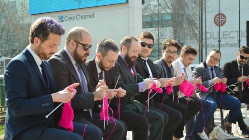Llamando la atención incluso de medios internacionales, los "Hombres Tejedores" de Chile llevan un poco más de dos años juntándose mensualmente para talleres de tejido y también han hecho intervenciones urbanas.