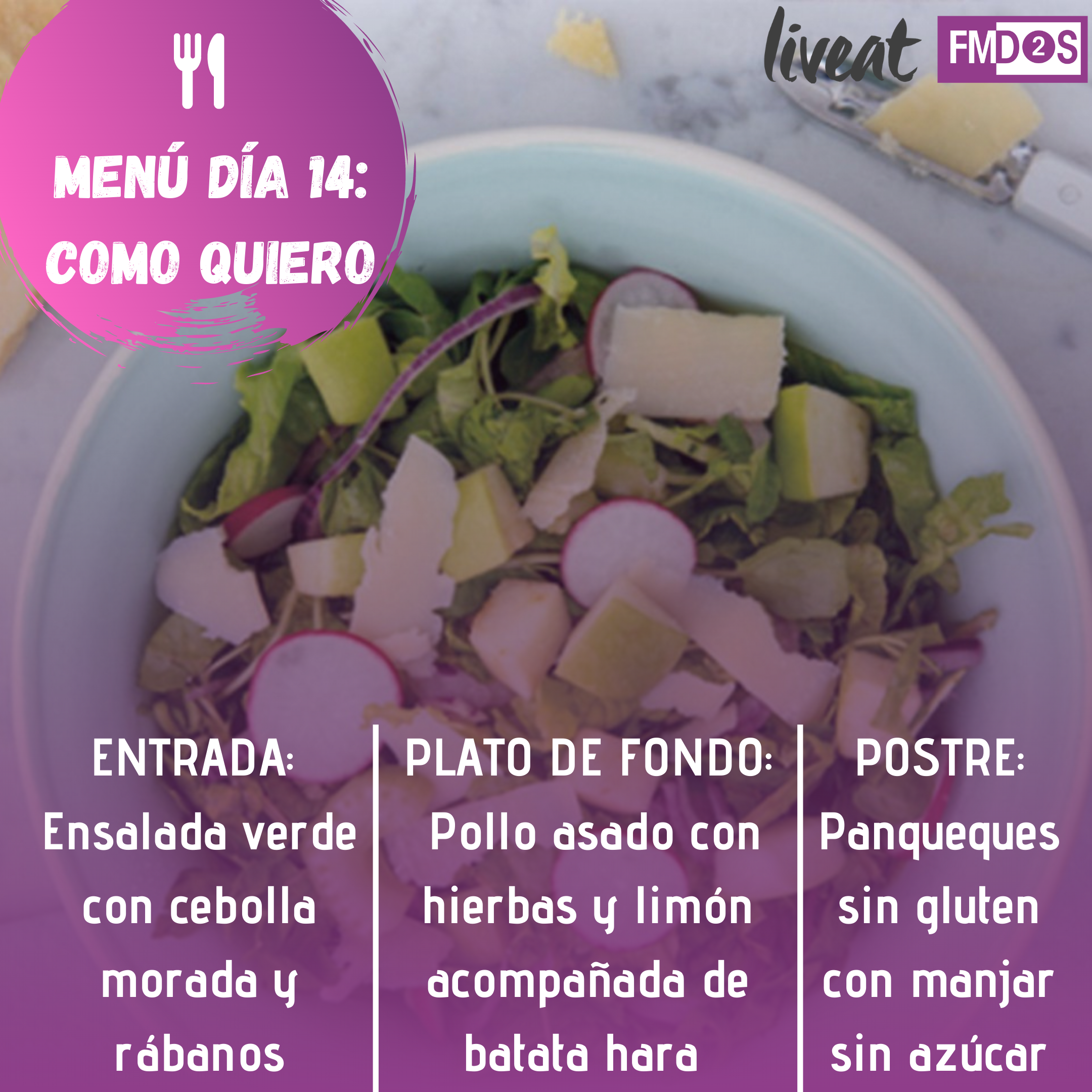 ENTRADA: ENSALADA VERDE CON CEBOLLA MORADA Y RÁBANOS