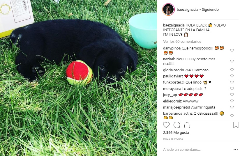 "Hola Black. Nuevo integrante en la familia. I'm in love", escribió la actriz que da vida a "Trinidad" en la apuesta nocturna de Canal 13.