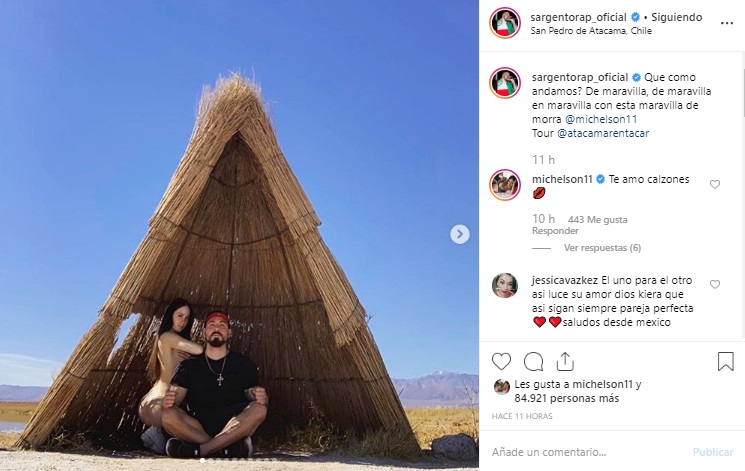 'Qué como andamos? De maravilla, de maravilla en maravilla con esta maravilla de morra @michelson11', consignó el rapero en su red social.