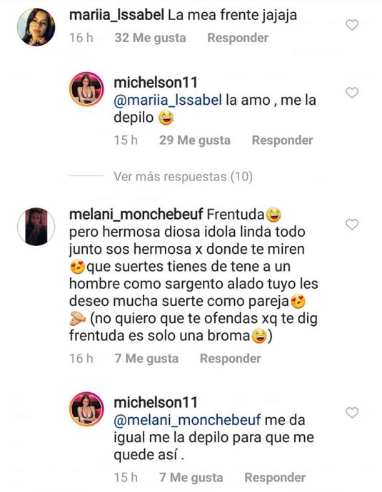 Por lo demás, la modelo ha vuelto a recibir una serie de comentarios malintencionados en Instagram, esta vez por el tamaño de su frente. Por lo mismo, la participante de "Resistiré" aclaró la situación y respondió que ama su frente y que se la depila para que quede así.