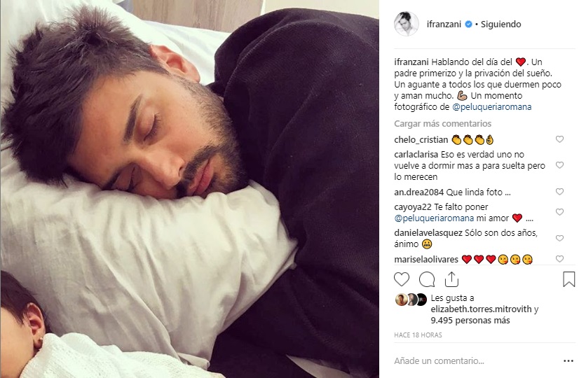"Hablando del día del ❤️. Un padre primerizo y la privación del sueño. Un aguante a todos los que duermen poco y aman mucho. 💪🏼 Un momento fotográfico de @peluqueriaromana", escribió el periodista para acompañar la reveladora postal.
