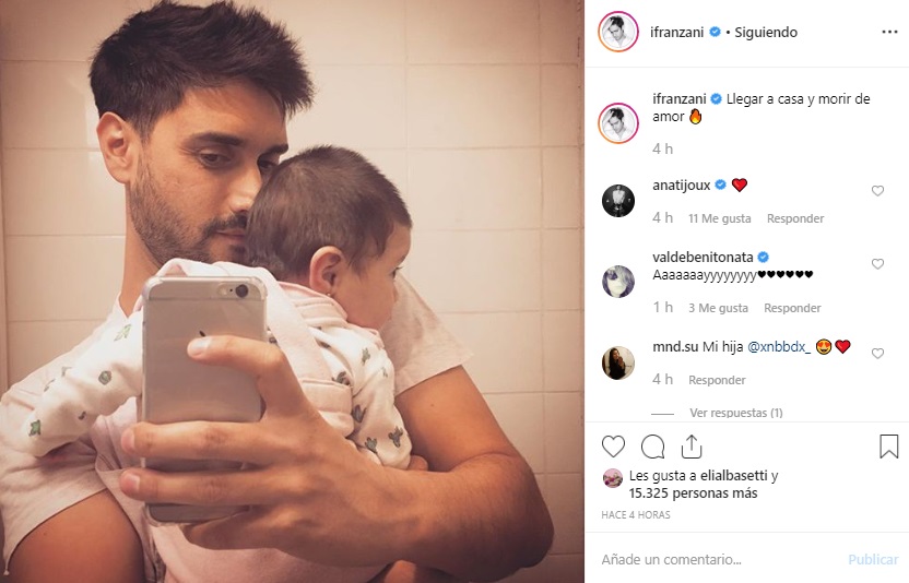 "Llegar a casa y morir de amor", escribió Ignacio para acompañar una foto que subió a Instagram con su pequeña en los brazos.