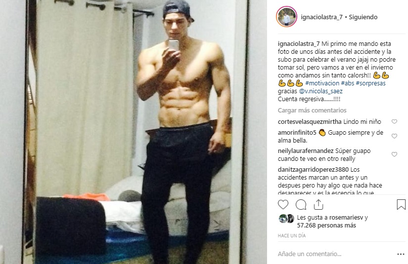 "Mi primo me mandó esta foto de unos días antes del accidente y la subo para celebrar el verano jajaj. No podré tomar sol, pero vamos a ver en el invierno como andamos sin tanto calorsh!! 💪💪💪💪💪 #motivacion #abs #sorpresasgracias @v.nicolas_saez Cuenta regresiva", escribió el ex chico reality.