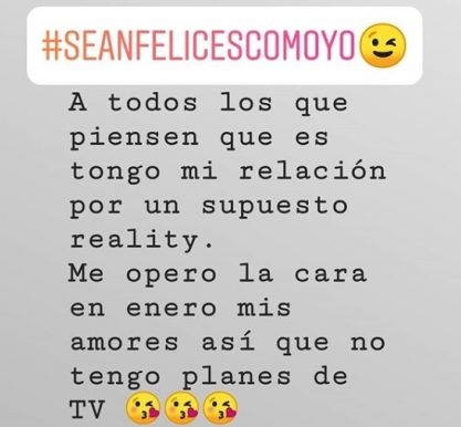 En el programa abarcaron el rumor de que la relación sería un "tongo" para entrar a la TV, después que muchos seguidores no le creyeran a su reconciliación. Ante esto Ignacio Lastra fue rápido en responder en su cuenta de Instagram, aclarando que: “A todos los que piensen que es tongo mi relación por un supuesto reality, me opero la cara en enero, mis amores, así que no tengo planes de TV”.