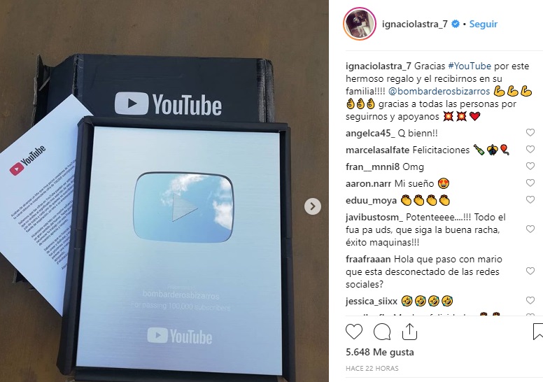 Pero actualmente, Ignacio hizo noticia por un importante logro en su oficio como YouTuber y decidió compartirlo en Instagram con sus más de 951 mil seguidores.