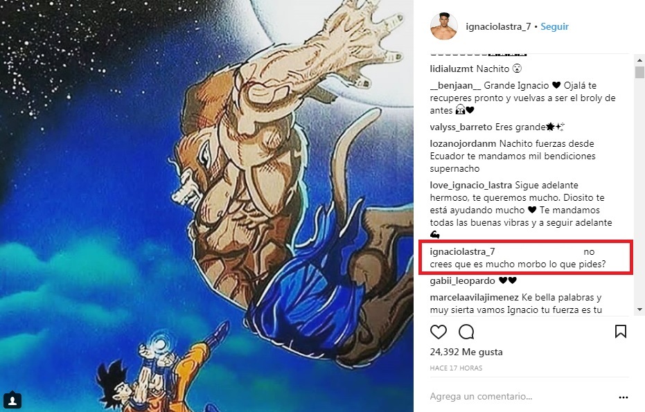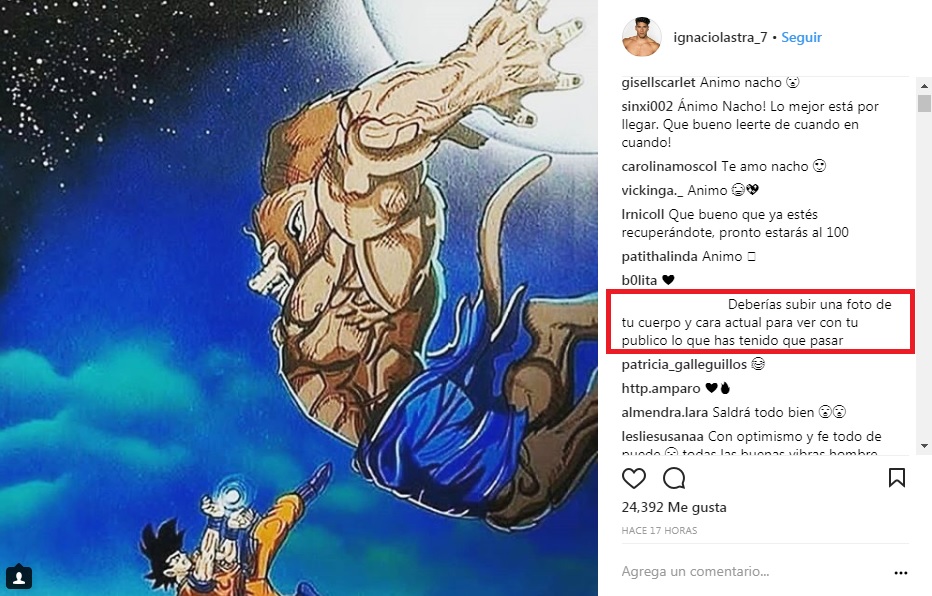 Ahora Ignacio quiso compartir con sus seguidores un mensaje que decía "La vida trae pruebas difíciles y en algunos casos imposibles de superar, lo importante es saber cual es tu propósito si llegas a tener una segunda oportunidad!!!", frase acompañada de una foto de los dibujos animados de Dragon Ball.