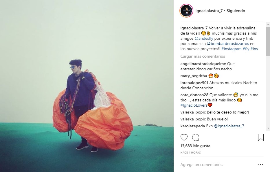 "¡¡Volver a vivir la adrenalina de la vida!! Muchísimas gracias a mis amigos @andesfly por la experiencia y también por sumarse a @bombarderosbizarros en los nuevos proyectos", eso fue lo que escribió Ignacio junto a la siguiente foto: