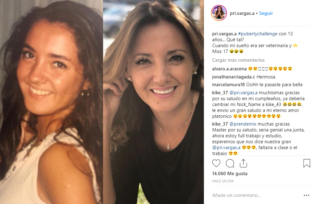 La periodista de Mega, Priscilla Vargas también quiso participar de este desafío y publicó una imagen de su pasado a través de su Instagram.