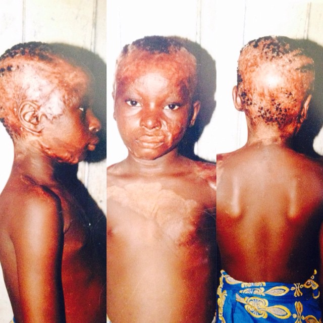 Shalom Nchom tenía solo nueve años cuando sufrió un accidente. Se quemo gran parte de su cuerpo con aceite para freír en la tienda que tenía su familia.