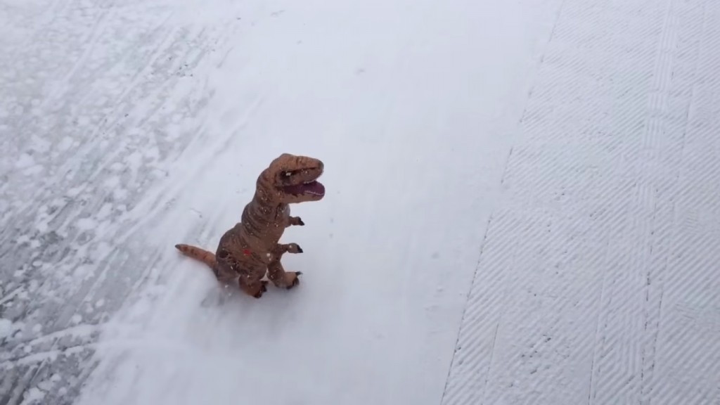 Este divertido Tiranosaurio Rex quiso salir a jugar en la nieve y hacer el típico ángel de nieve. El problema es que sus pequeños brazos no lo acompañaron. Luego de varios intento fallidos, encontró la mejor manera de hacerlo.