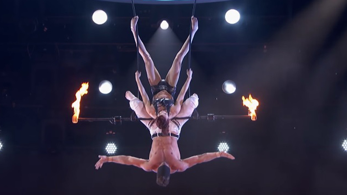 Mary y Tyce quisieron presentarse ante el exigente jurado del programa mostrando una arriesgada rutina de acrobacias que incluía fuego. El dúo sin duda se lució con sus complejos trucos y fue justo hacia el final del show que llegó el momento de más impacto.