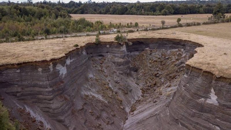 La falla geográfica está ubicada en el sector rural de Las Compuertas, entre las comunas de Castro y Dalcahue, a 12 metros de distancia del camino público.