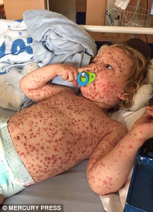 De acuerdo al diario "Daily Mail", todo partió el 13 de julio pasado cuando comenzaron a aparecer las primeras pintas rojas en el cuerpo del niño. Pero al poco tiempo fueron aumentando hasta cubrir todo su cuerpo. "Mientras estábamos esperando en la urgencia del hospital por una cama para él, podía ver cómo la piel de todo su cuerpo se enrojecía justo frente a mis ojos", detalló Sarah Allen, su madre.