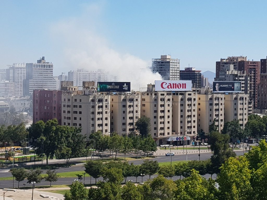 Los residentes fueron evacuados porque la emergencia ocurre frente a una de las salidas de la estación Baquedano del Metro de Santiago. El tránsito también está suspendido en las calles cercanas.
