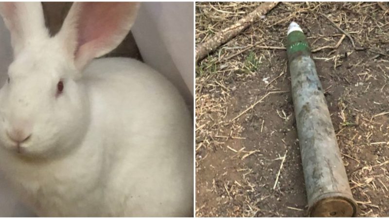 El conejo, de nombre Ruffus, habría hecho un hoyo de 10 centímetros de profundidad, encontrando la pieza que mide cerca de 60 centímetros. Personal del GOPE se hizo presente en el lugar, retirando el artefacto.